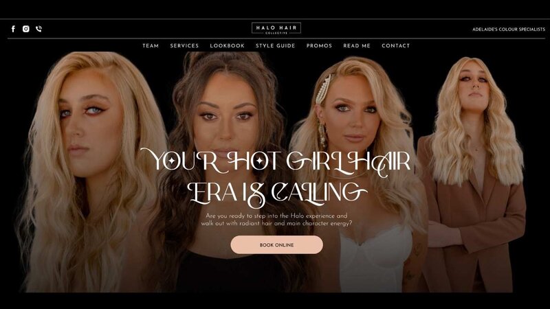Halo Hair Collective sought to work with She Glows Creative Co. to develop a luxurious and unique website that reflected its commitment to quality, sustainability, luxury service and community engagement. The objective was to create a visual online presence that stood out in the competitive beauty industry while resonating with the salon's values and clientele. Furthermore, they wanted a beautiful site that catered to their young demographic while balancing functionality and marketing optimisation.